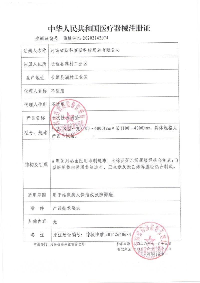 河南省斯科賽斯科技發(fā)展有限公司創(chuàng)建于 2011 年,位于“中國醫(yī)療耗材之都”- 河南省長垣縣,西臨 308 省道,南靠新菏鐵路,北依長濟(jì)高速,交通便捷,經(jīng)濟(jì)發(fā)達(dá),環(huán)境優(yōu)美。斯科賽斯積極進(jìn)入醫(yī)療健康和服務(wù)領(lǐng)域,秉承為用戶創(chuàng)造價值的理念,專注于醫(yī)用耗材解決方案的研發(fā)和運(yùn)營,并為用戶提供完善的產(chǎn)品解決方案;  斯科賽斯主要生產(chǎn)醫(yī)用麻醉系列、醫(yī)用高分子系列、醫(yī)用敷料包系列、醫(yī)用無紡布系列、醫(yī)用防護(hù)系列、醫(yī)用脫脂棉系列、生物材料制品類等七大類、100 多個品種、400 多個規(guī)格的產(chǎn)品。公司占地面積約 30000 平方米,建筑面積20000 平方米,擁有 10 萬級的凈化車間總面積 10000 平方米。擁有國際先進(jìn)水平的生產(chǎn)設(shè)備和檢測儀器,技術(shù)裝備精良,檢測手段完善,為醫(yī)療行業(yè)的不斷發(fā)展進(jìn)步提供保障。公司順利通過 ISO9001、ISO13485 質(zhì)量管理體系認(rèn)證。  斯科賽斯堅(jiān)持研發(fā)高科技新產(chǎn)品,力爭在醫(yī)療器械關(guān)鍵領(lǐng)域取得技術(shù)和研發(fā)的重大突破;立足國內(nèi)和國際兩個市場,逐步實(shí)現(xiàn)管理理念、經(jīng)營機(jī)制、人力資源、技術(shù)、產(chǎn)品、市場等全方位對接,提高企業(yè)的核心競爭力;過去的歲月里,斯科賽斯砥礪前行,誠信務(wù)實(shí),銳意進(jìn)取,不斷創(chuàng)新,用自己的睿智和辛勞,以富有責(zé)任感的使命,在探索中追求,在追求中超越,致力于成為值得信賴的醫(yī)療用品生產(chǎn)企業(yè)!在未來的日子里,斯科賽斯將一如既往豪情滿懷,信心百倍,攜手并肩,執(zhí)著追求,向更高的的目標(biāo)前進(jìn),鑄造新的輝煌!
